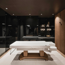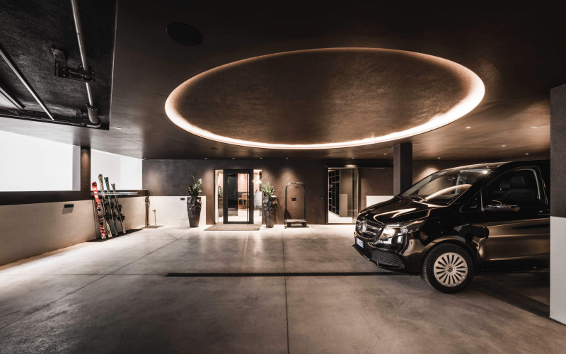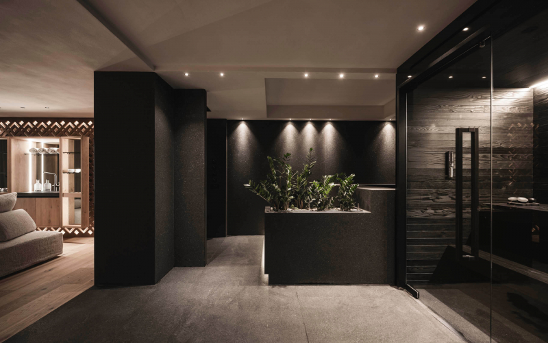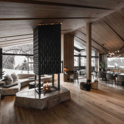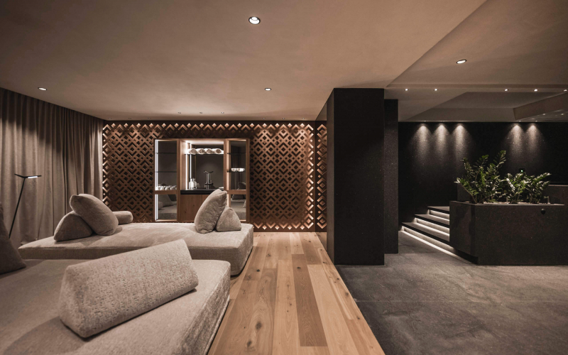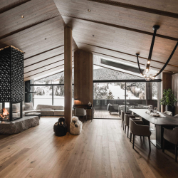 The lower floor is dedicated entirely to leisure and well-being. The leisure space has a very distinguished private bar, an elegant billiard table, a chess area as well as a VR gaming area. For a truly relaxing stay, head to the chalet’s stunning wellness and spa area. For ultimate well-being, Alpurio also features a jacuzzi, turkish bath and sauna. There is a fitness and yoga room too and guests can enjoy a wealth of massage and beauty treatments arranged by the chalets wellness manager.