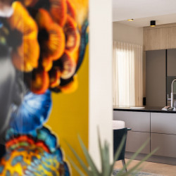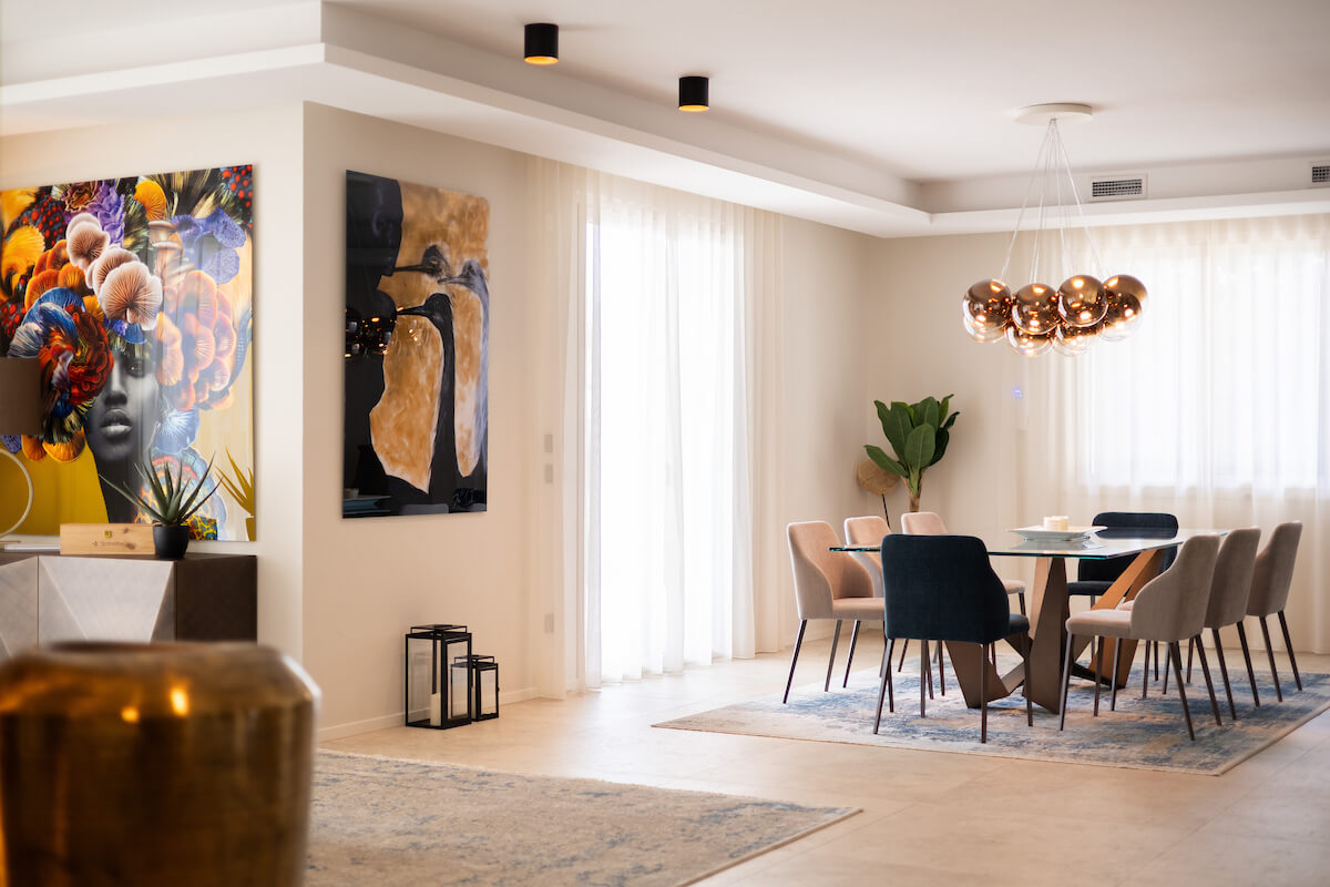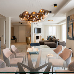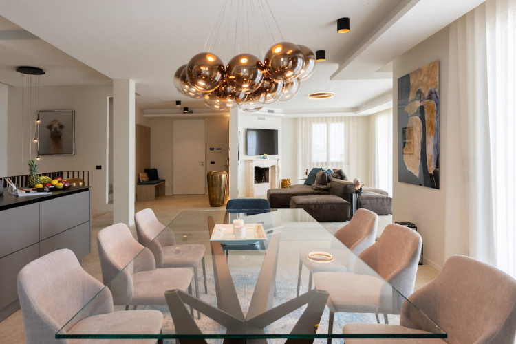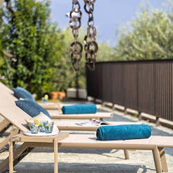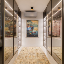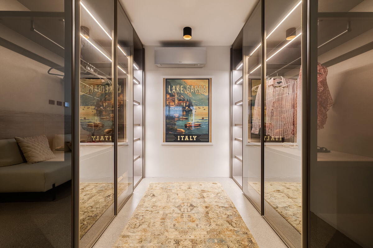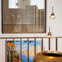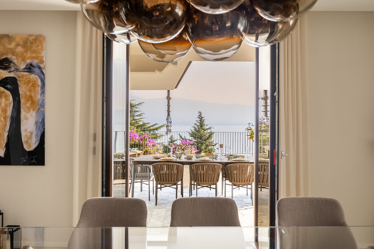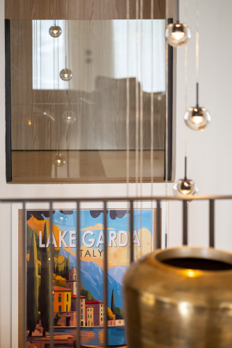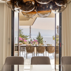 Every detail merges high-quality materials, custom furnishings, and warm, natural tones with bold touches of art and vintage Lake Garda illustrations. Enjoy the art of outdoor living on the villa’s vast terrace, which opens towards the lake, while the expansive grounds also boast a large pool overlooking Lake Garda.