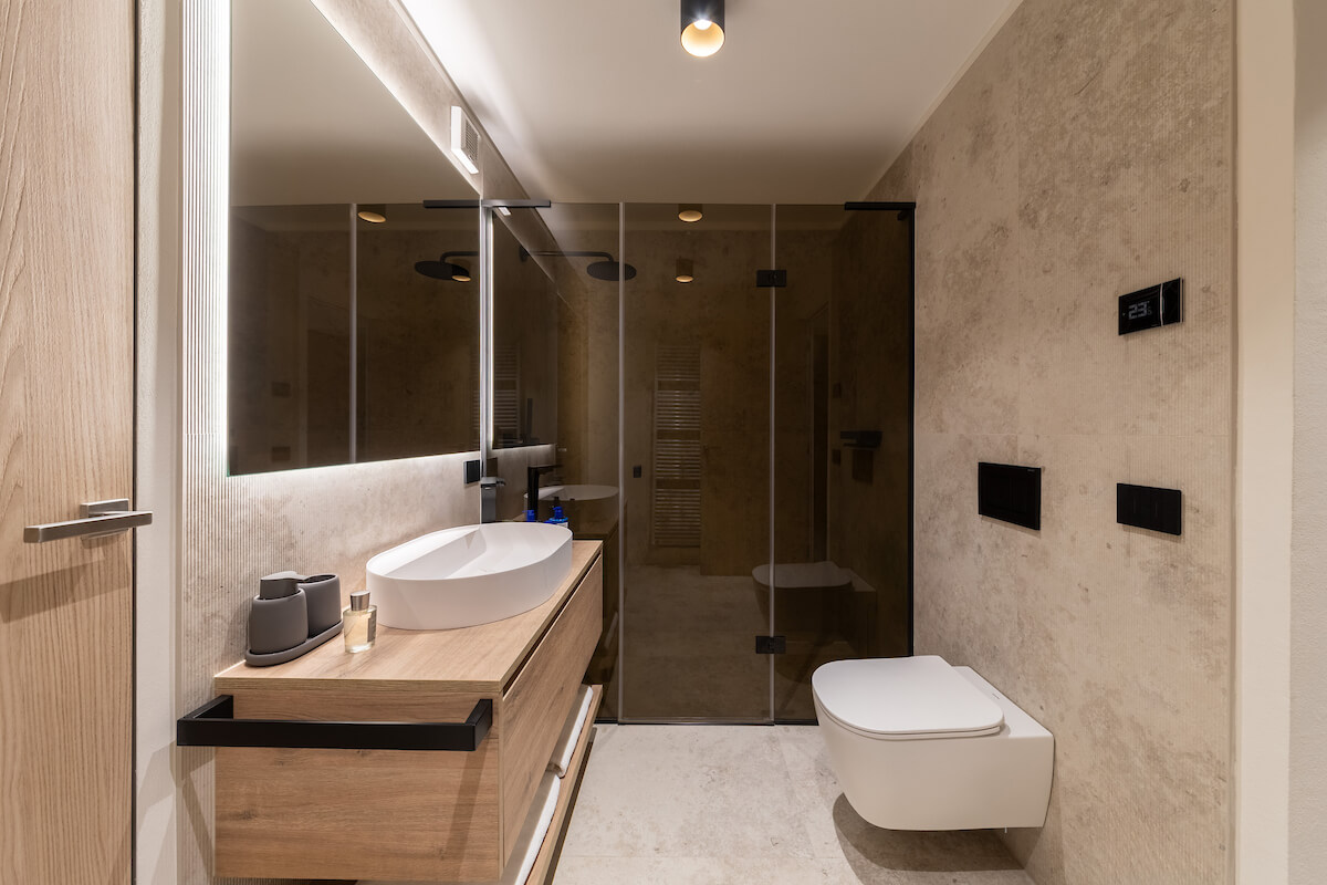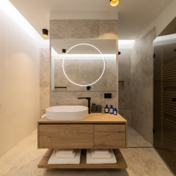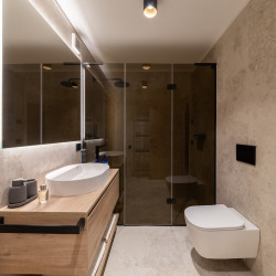 There are 3 en-suite bathrooms, 1 guest toilet and a full bathroom in the private wellness area.