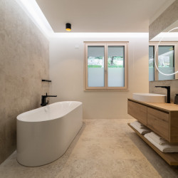 The villa has air conditioning, underfloor heating and decentralised ventilation in all rooms.