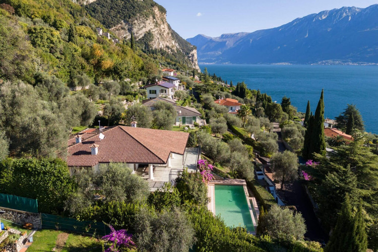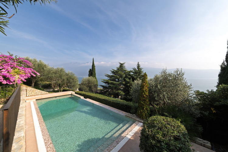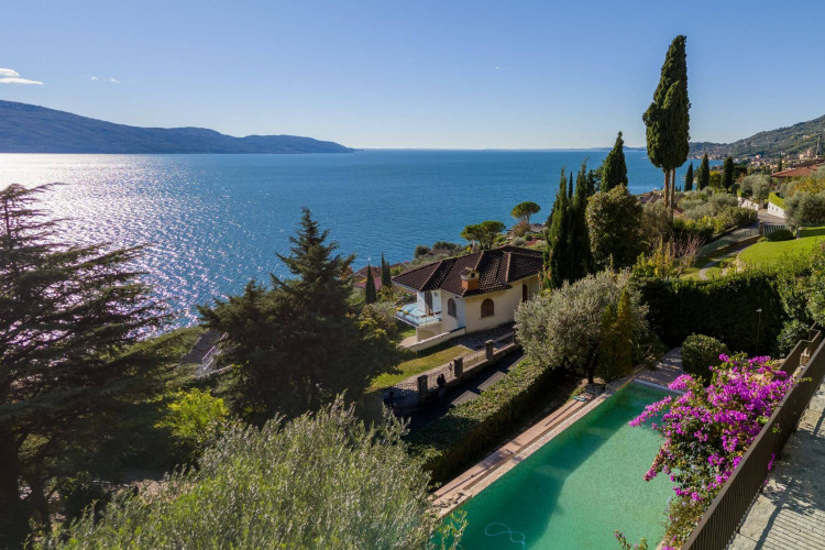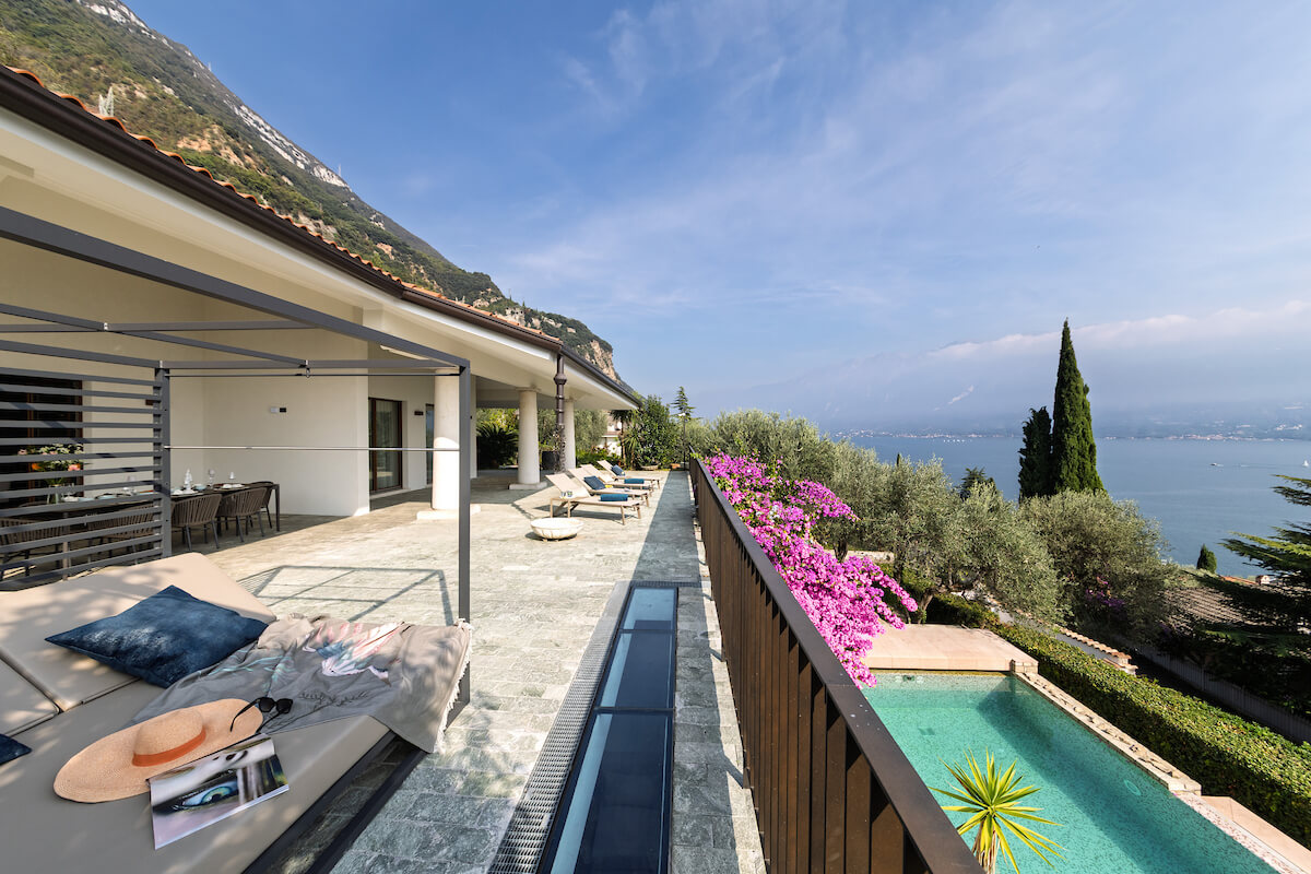 A modern and exclusive villa with panoramic lake views, private pool, spa, and tranquil gardens.