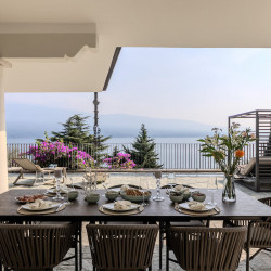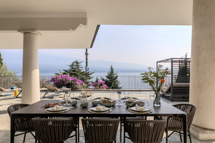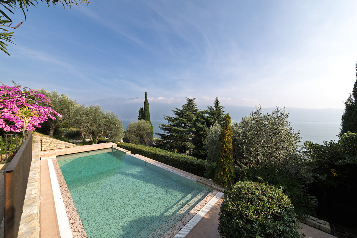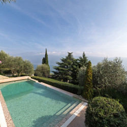 Outdoors, Villa Giulia’s terraced grounds are spread over several levels, offering unobstructed views across Lake Garda and even foot access down to the water. A large, furnished terrace overlooks the lake – perfect for al-fresco dining or simply soaking in the scenery – and also features a barbecue area. The highlight is the private pool, which boasts stunning panoramic views of Lake Garda as its backdrop.