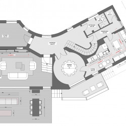 Carefully designed, the villa is spread over two levels and accommodates up to ten guests across four bedroom suites. The ground floor is host to the beautiful living space with lounge and stunning views over the gardens and lake. The living areas have been lovingly decorated and include a library and study and a quirky circular dining room with wide windows facing the lake. There is a modern, fully-equipped kitchen too.
