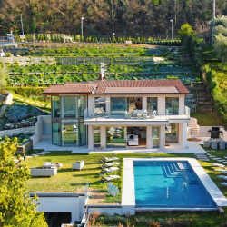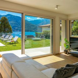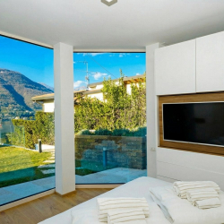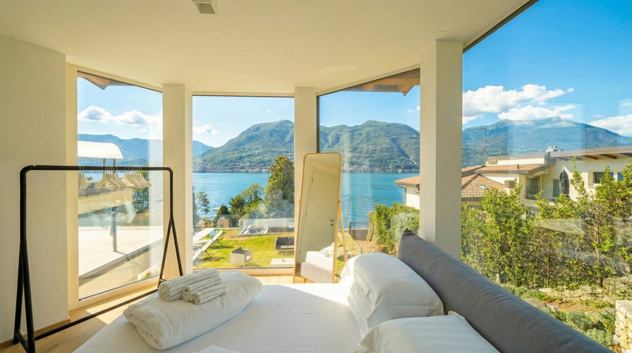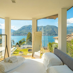 Sitting on the shores of Lake Garda, Villa Golfo is a modern private villa overlooking the Gulf of Salò, with access to the beach and wonderful lake views from the main living spaces.