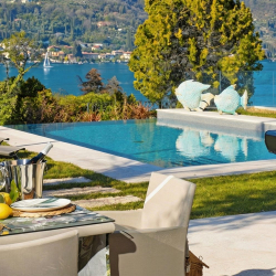 Outside, the gardens are beautifully kept and the private pool terrace is an easy place to spend the day – and when you want the lake itself, it’s just a stone’s throw to the beach.