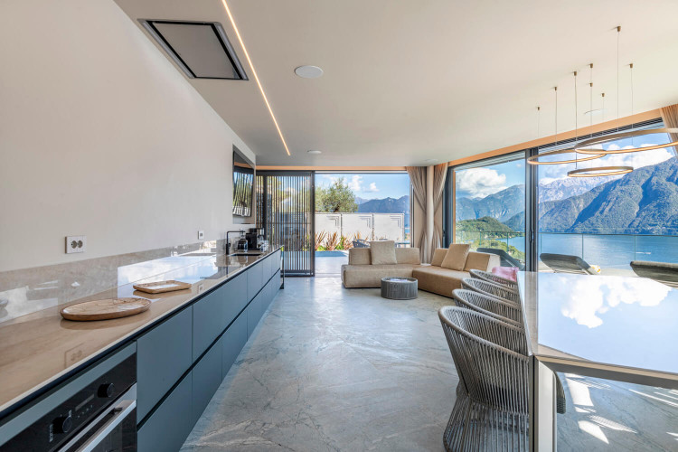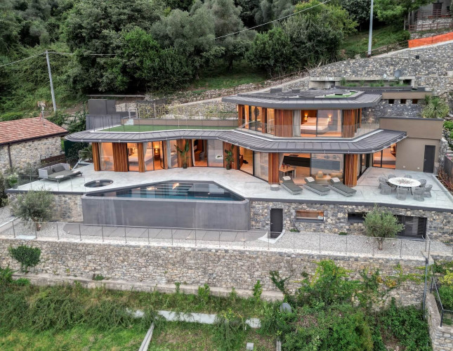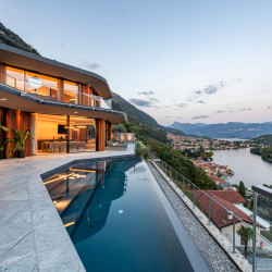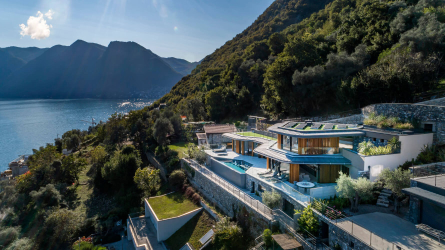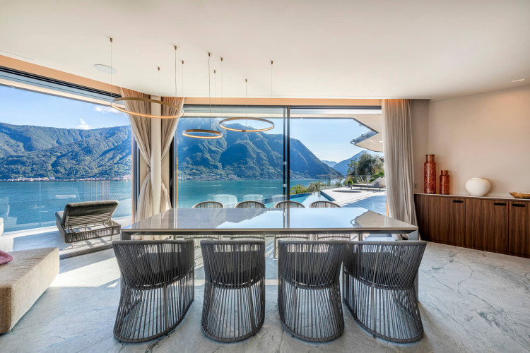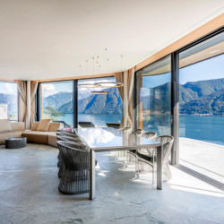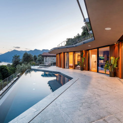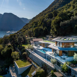 Within walking distance to the charming town of Sala Comacina and Lake Como’s shore, the villa offers a breathtaking 180-degree view over the lake and stunning private infinity pool.
