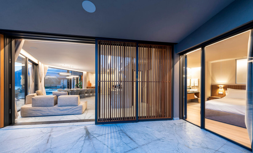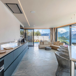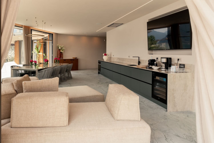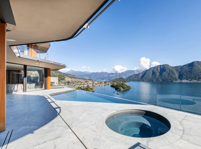The outdoor area of the villa is an oasis of luxury and relax and boasts an infinity pool, integrated hot tub and incredible panoramic views over the lake.