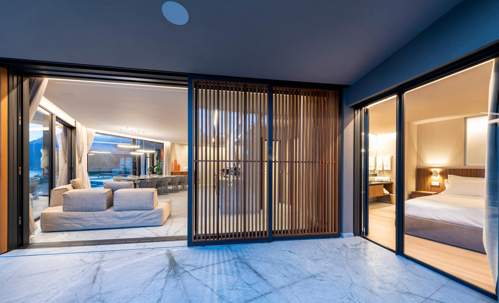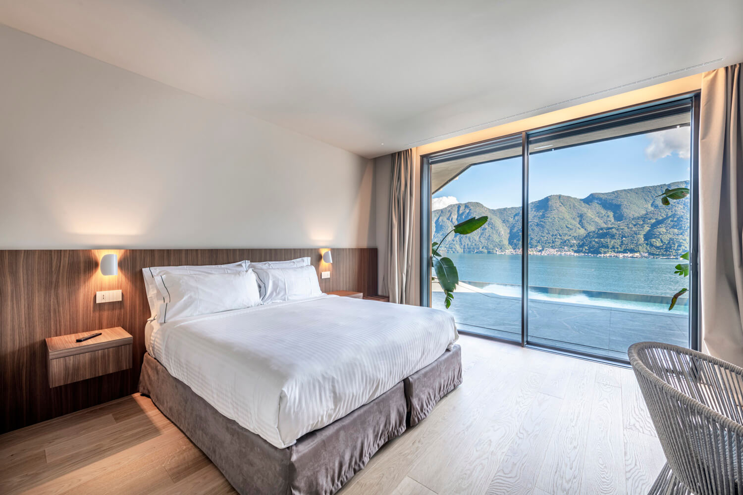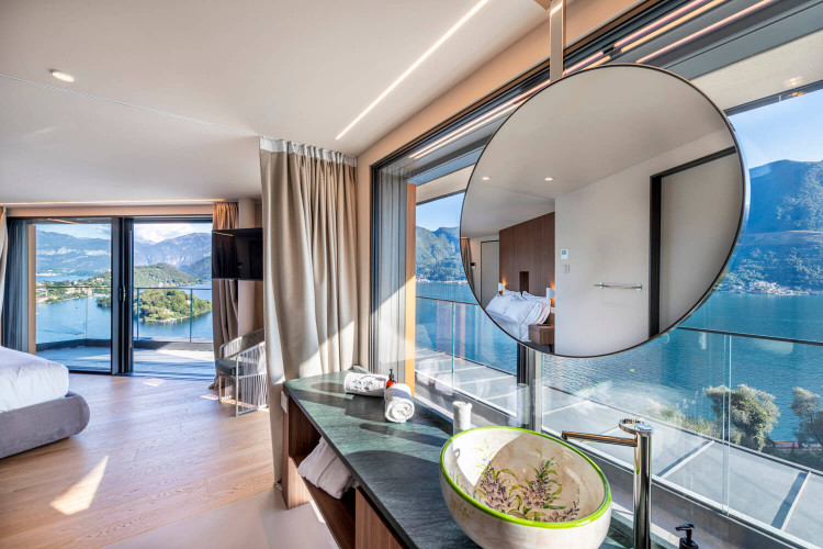 The 3 bedroom suites on the ground floor of the villa all have direct access to the terrace and boast wide lake views.