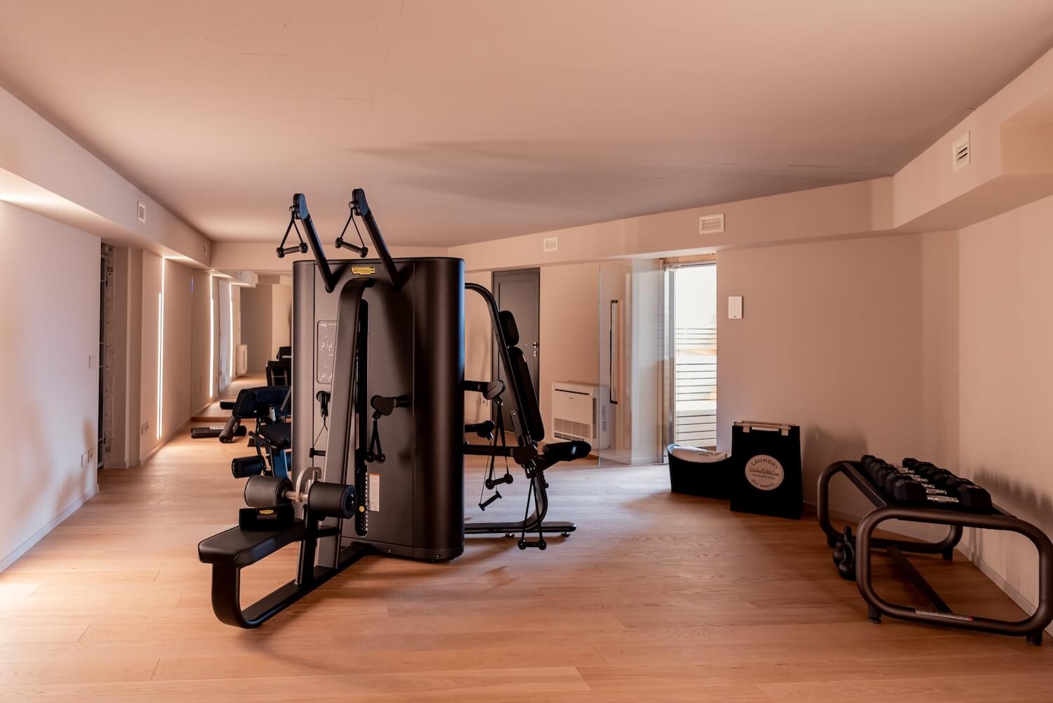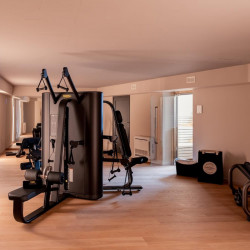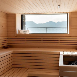 Villa Oseno hosts a fully equipped gym complete with exercise bikes, weights and yoga space and there is a lake view sauna too.