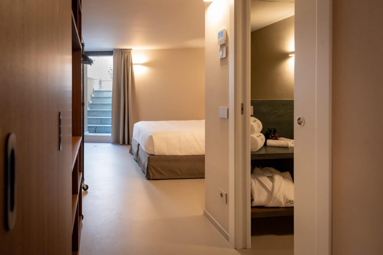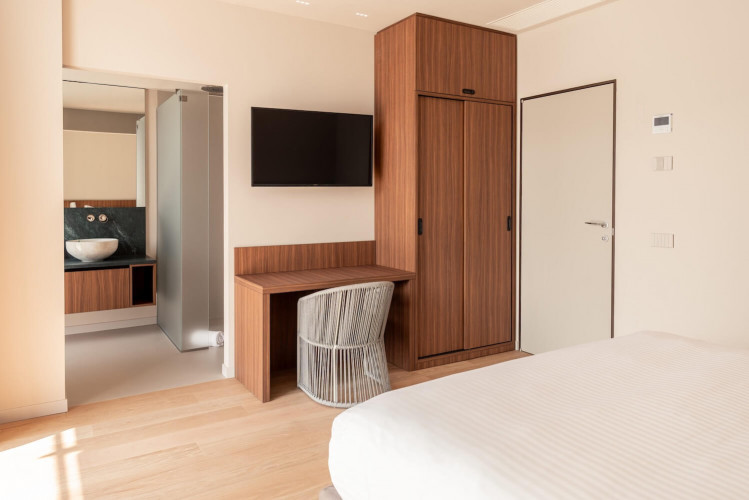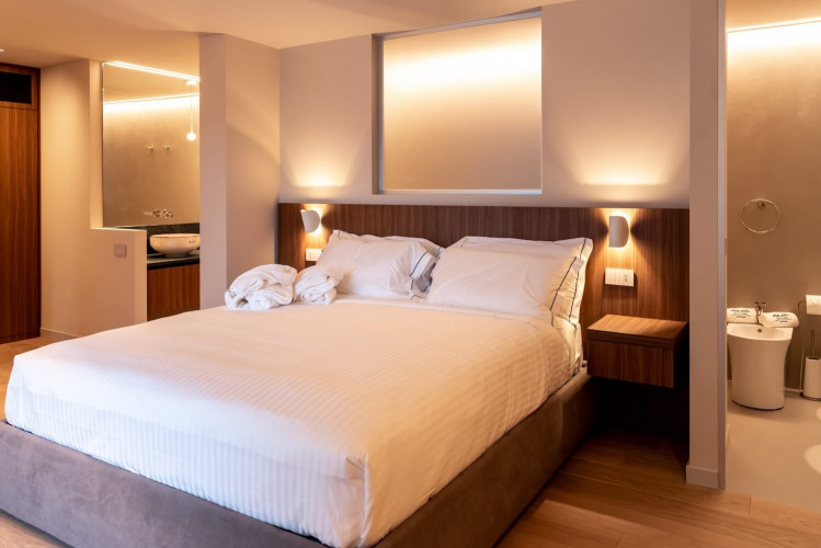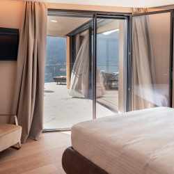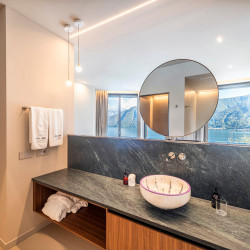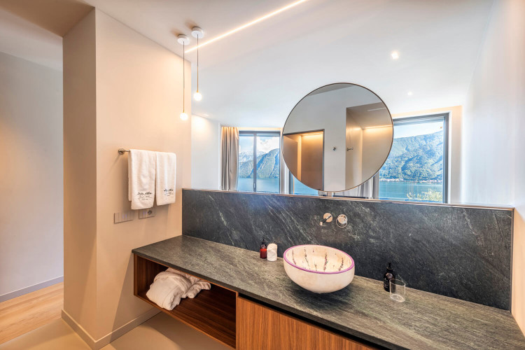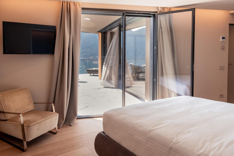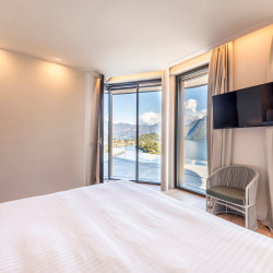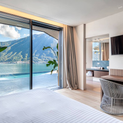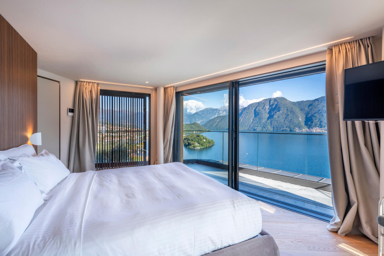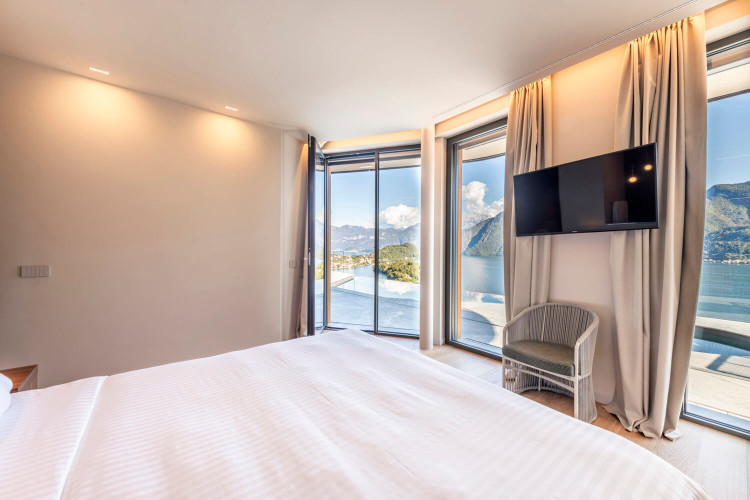 The fifth bedroom is located on the lower floor of the villa and is a standard room with ensuite bathroom. This has direct access to the terrace but is without lake view.