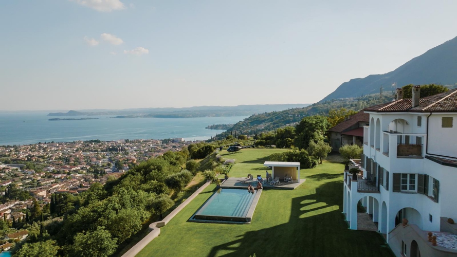 Lake Garda, Toscolano MadernoA spectacular hillside estate above Toscolano Maderno, with two adjoining villas, wide lake views, two pools and two outdoor jacuzzis – made for big group weeks where everyone has space, comfort, and somewhere beautiful to gather.